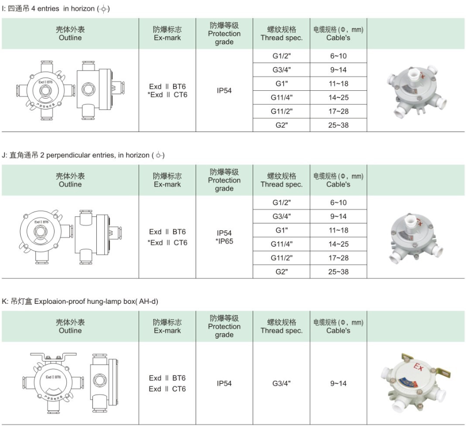 ●適用于ⅡA、ⅡB、ⅡC類(lèi);溫度組別:為T(mén)1~T6的爆炸性氣體環(huán)境。